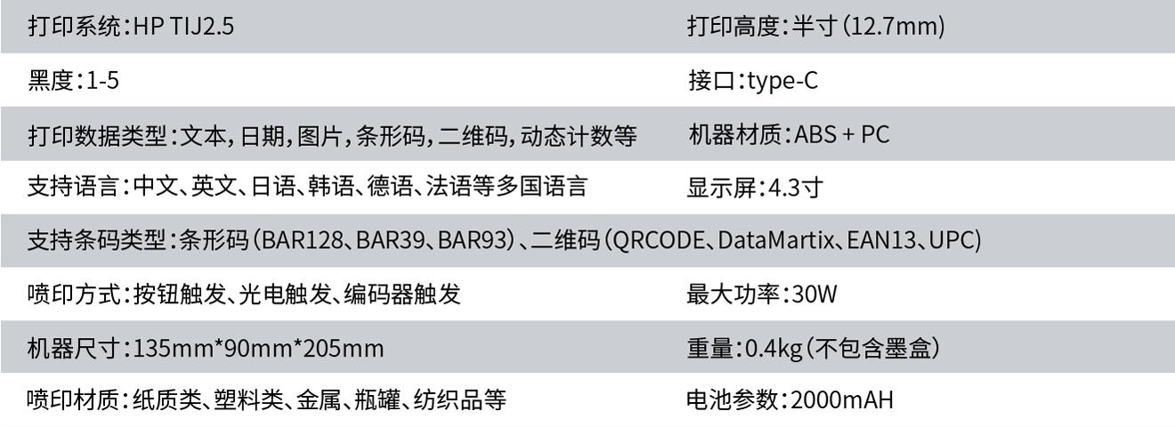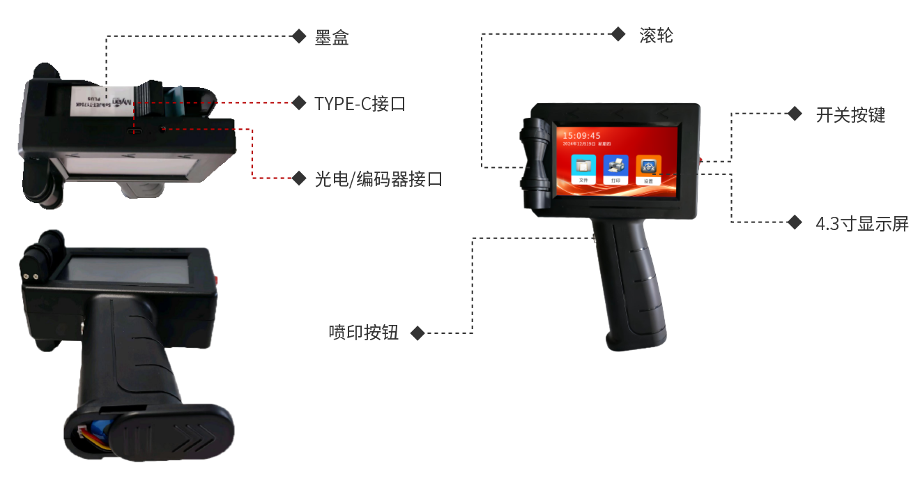 本款手持喷码机采用高集成度模块化设计,结构紧凑,整机重量显著优化,实现了卓越的便携性与移动性。