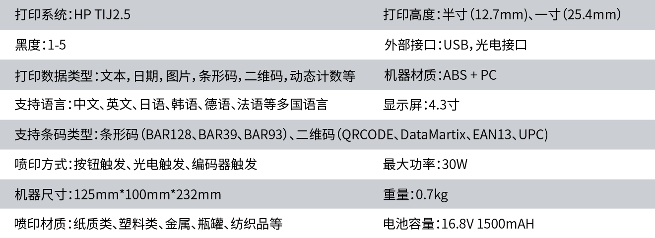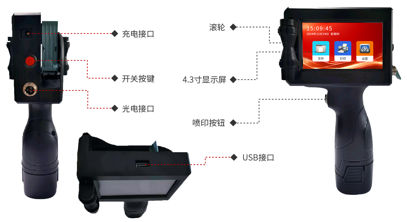 本款手持喷码机采用高集成度模块化设计,结构紧凑,整机重量显著优化,实现了卓越的便携性与移动性。